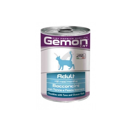 Die Häppchen mit Thunfisch und Weißfisch sind ein Alleinfuttermittel für ausgewachsene Katzen ab 12 Monaten.