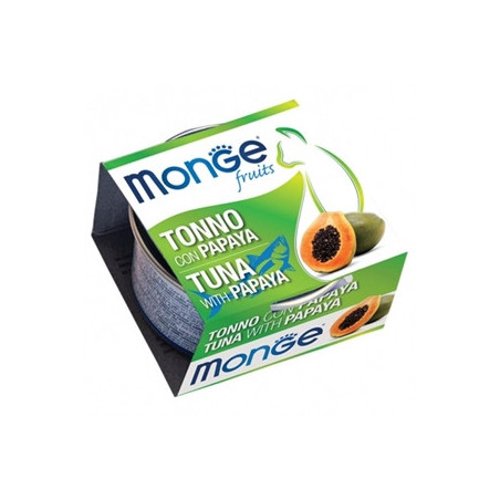 Monge Fruits Thunfisch mit Papaya ist ein Ergänzungsfutter für die raffiniertesten und anspruchsvollsten Katzen, das das Monge Natural Superpremium-Sortiment vervollständigt, eine Linie, die sich vollständig der natürlichen Ernährung widmet.