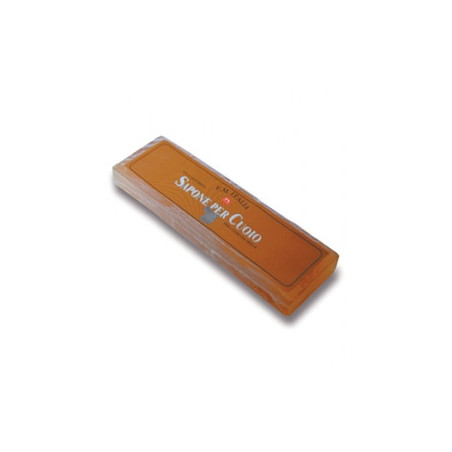 Mit einem nassen Schwamm über den Riegel „Sapone per Cuoio“ fahren. Führen Sie den Seifenschwamm über den Sattel und / oder das Geschirr.