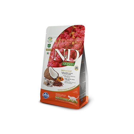 Fresh herring (18%), hydrolyzed herring protein (18%), pea starch, fish oil (from herring), extracted quinoa seeds (8%), linseed, dried coconut (2.5%), turmeric root (2.5%), inulin, fructooligosaccharides, yeast extract (source of mannanoligosaccharides), psyllium, calcium carbonate, dicalcium phosphate, calcium sulphate dihydrate, potassium chloride, sodium chloride, dried brewer's yeast, glucosamine, chondroitin sulfate, marigold flower extract (source of lutein).
