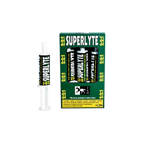 At the request of a large number of coaches, TRM has produced an electrolyte-based supplement in paste contained in a dosing syringe. 2: 2: 1. SUPERLYTE SYRINGE was created to satisfy those trainers who find the use of syringes convenient, to replace the loss of body electrolytes.