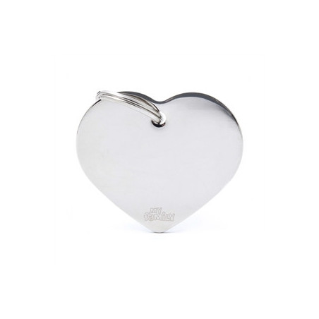 Heart tag in chromed brass. Made in Italy. Available in various sizes. Engraving included in the price