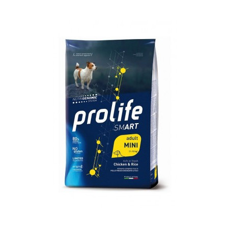 Prolife Adult Mini is a complete food formulated respecting the particular nutritional needs of small dogs (up to 10 kg in weight), often very active and with a fast metabolism, which require important energy needs. The risk to which the skin and hair are exposed, due to urban pollution and atmospheric agents, also requires an adequate integration of specific nutrients. The shape and size of the kibble must adapt to the particular conformation of the dog's mouth and teeth, to facilitate chewing and swallowing of the bolus.