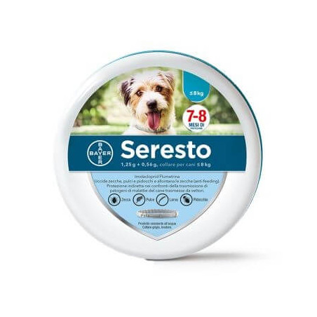 For the treatment and prevention of flea infestation (Ctenocephalides felis) for 7-8 months. The effectiveness against fleas begins immediately after the application of the collar. It protects the animal's surroundings from the development of flea larvae for 8 months. Seresto can be used as part of a treatment strategy for the control of Flea Allergic Dermatitis (FAD).
