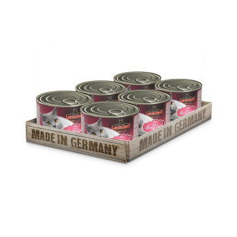 La carne succulenta viene arricchita con raffinati ingredienti e cotta con estrema cura nelle lattine monoporzione.